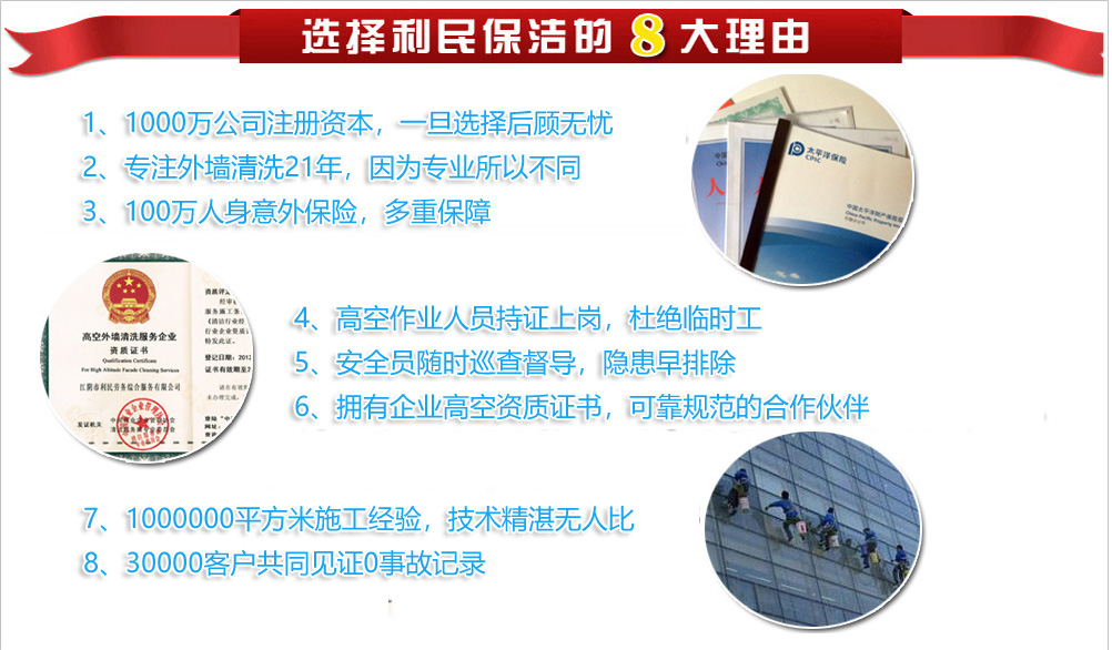 ![]() 利民,高空清潔行業(yè)的卓越領(lǐng)跑者。我們的外墻清洗業(yè)務(wù)包括:外墻清潔、外墻防水補(bǔ)漏、外墻涂料粉刷、LED樓體亮化工程高空安裝、外墻防水工程高空施工等系列高空作業(yè)項目,是物業(yè)公司、景觀工程公司、廣告公司、建筑、安裝公司、幕墻公司、各企事業(yè)單位等最佳高空作業(yè)服務(wù)專業(yè)供應(yīng)商.專業(yè)安全高效,承包高空外墻清洗,.專業(yè)的施工團(tuán)隊,所有人員均持證上崗,高空人員均購買100萬保險,21年1000000平方的外墻清洗經(jīng)驗(yàn),優(yōu)質(zhì)的服務(wù)..[詳細(xì)] 經(jīng)典案例更多 >